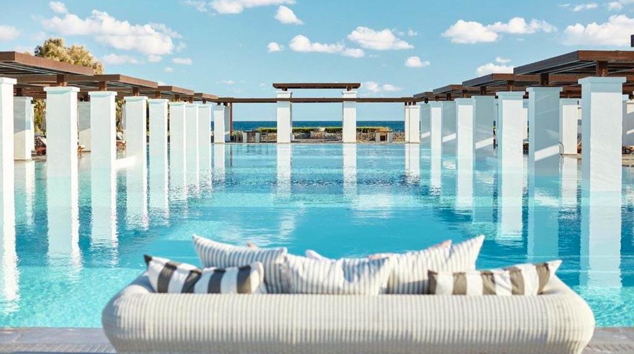 Das 5* Grecotel Amirandes erwartet euch inmitten von duftenden Gärten und palmengesäumten Lagunen, verfügt über einen Infinity-Pool mit atemberaubendem Blick auf die Ägäis, ein Kinderbecken sowie ein Wellnesscenter mit Innenpool, Sauna und Fitnessgeräten. 🏋️ Außerdem könnt ihr zwischen 10 hochwertigen Restaurants und Bars wählen, wo euch feinste Gourmetküche erwartet!👩🍳