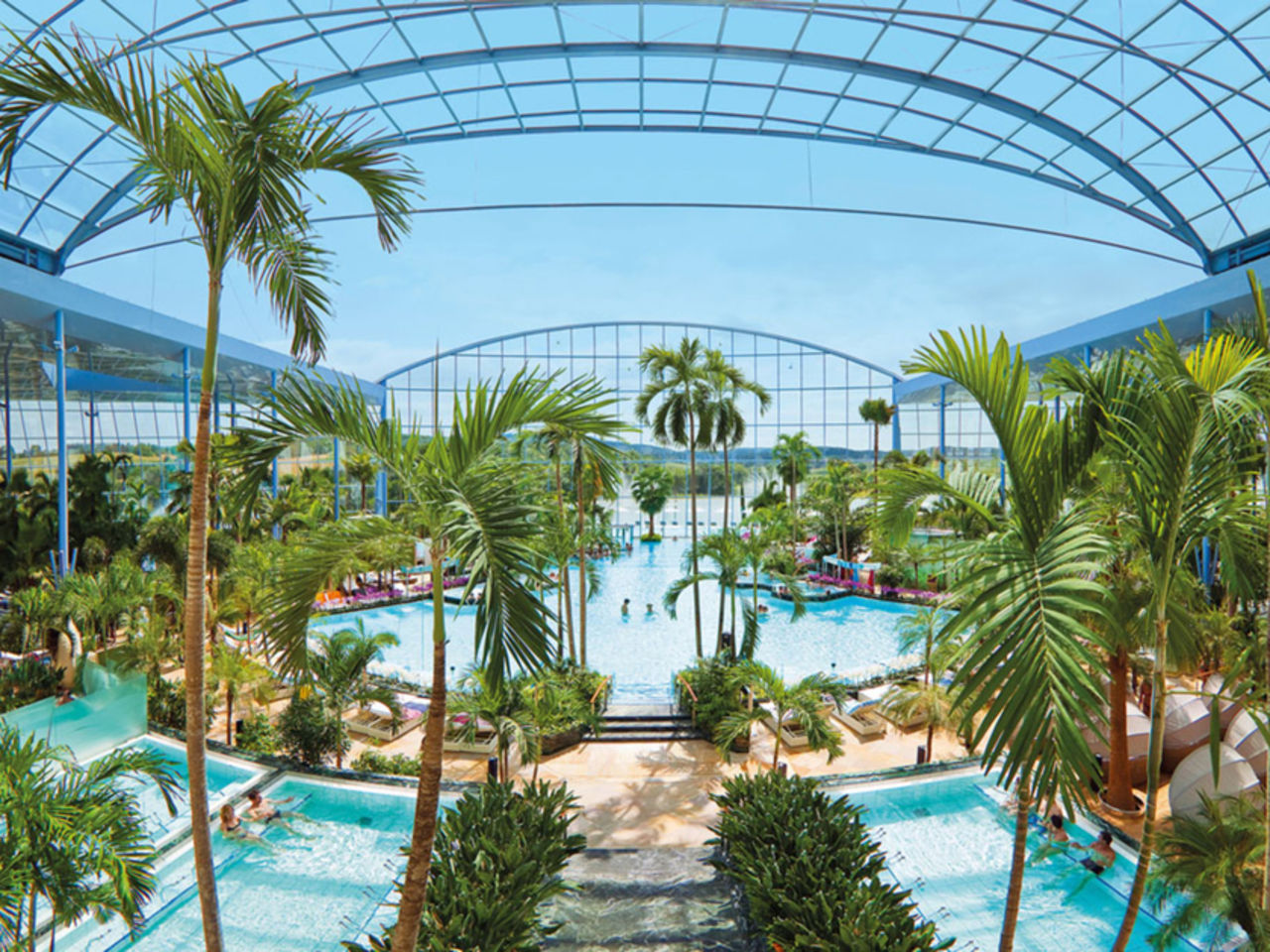 400 Palmen sorgen in den Thermen & Badewelt Sinsheim für ein kleines bisschen Südseefeeling. Euch erwarten eine große Lagune mit 34° C warmen Wasser und eine angenehme Lufttemperatur von 32° Celsius. Entspannen könnt ihr im Whirlpool oder einem der Mineralbecken.