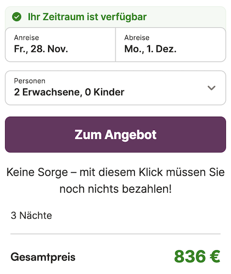 Sollte das Beispiel-Datum ausgebucht sein, könnt ihr natürlich auch euer Wunschdatum selber wählen.