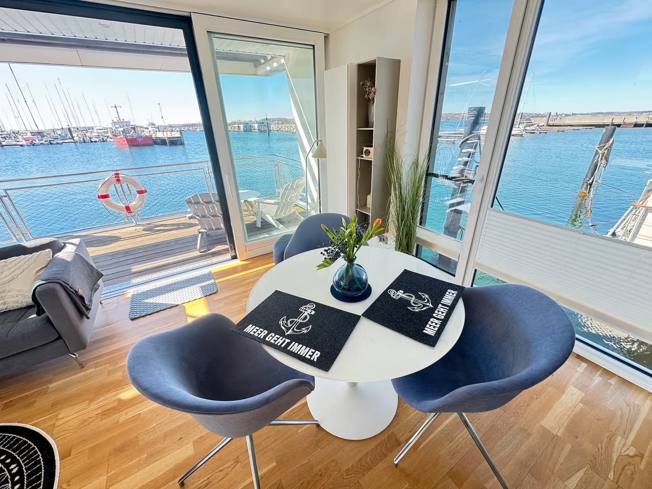 Das 64 m² Floating Home ankert an der Kieler Förde, besteht aus einem Wohnzimmer, einer sehr gut ausgestatteten Küche, einem Schlafzimmer und einem Badezimmer.