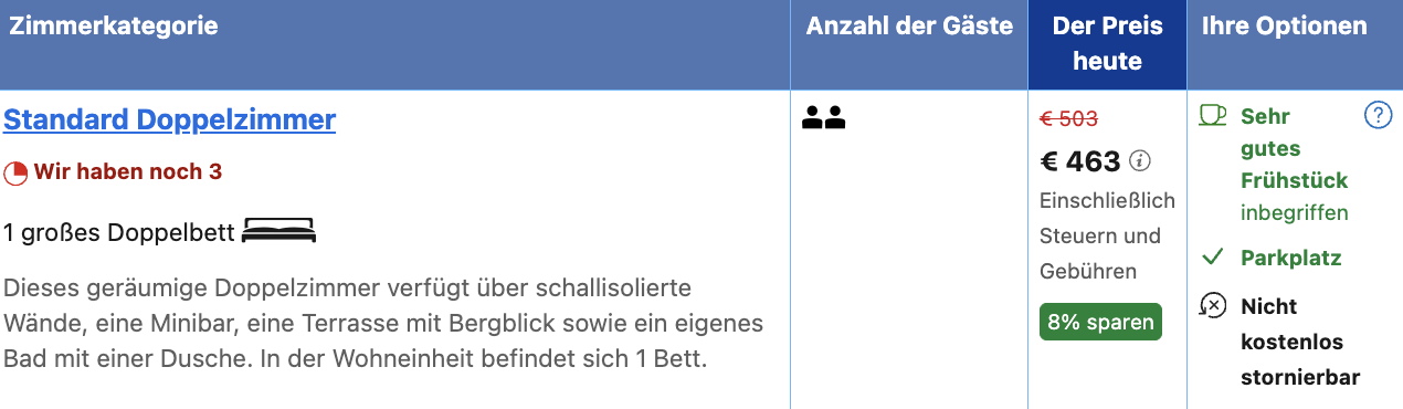 Lasst euch zu Booking weiterleiten, wo es zur Zeit den günstigsten Preis gibt.