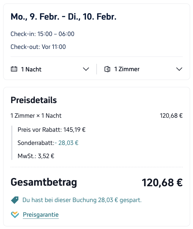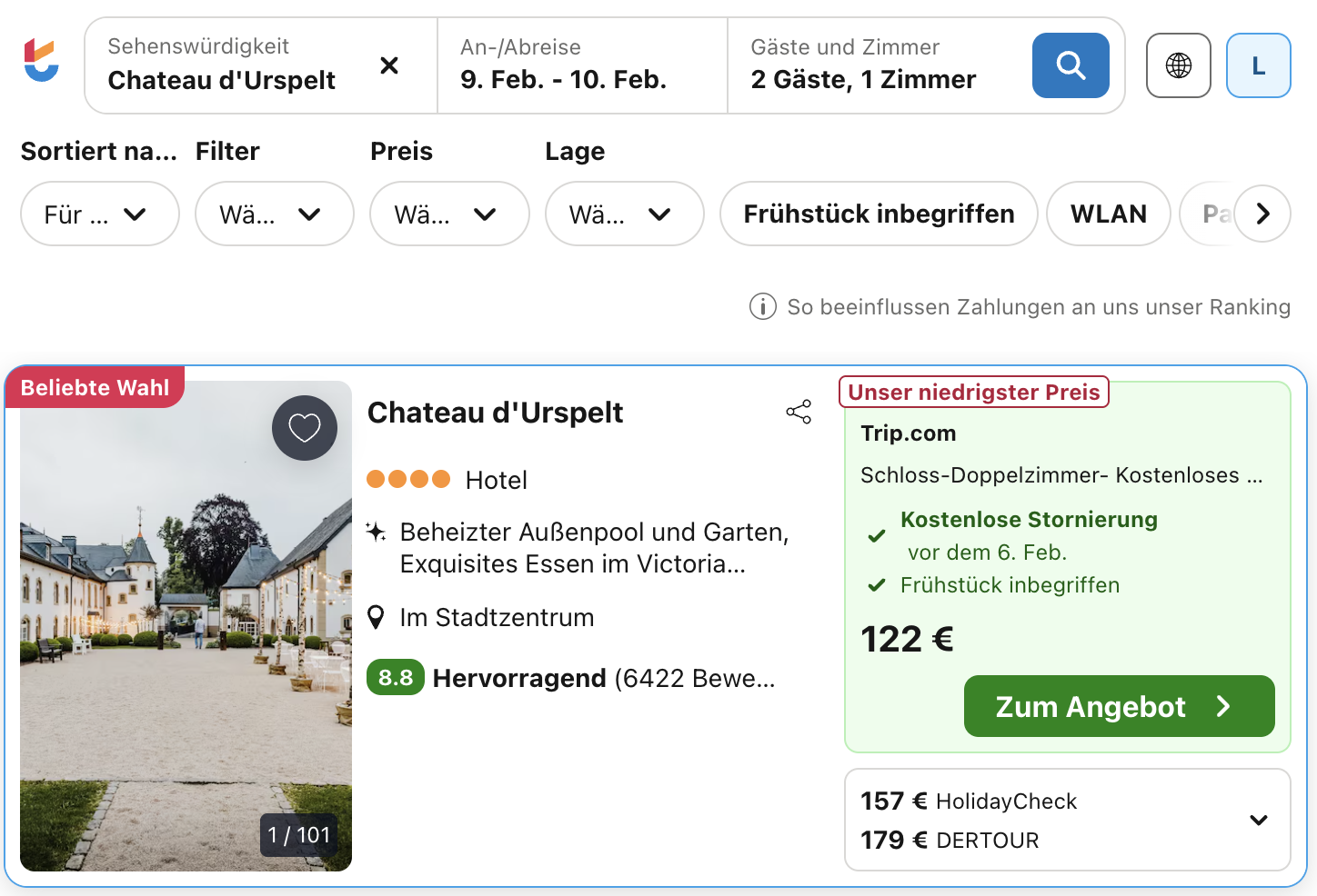 An unsrem Beispieltermin konnten wir den besten Preis bei Trip finden. Lasst euch also direkt dorthin weiterleiten.