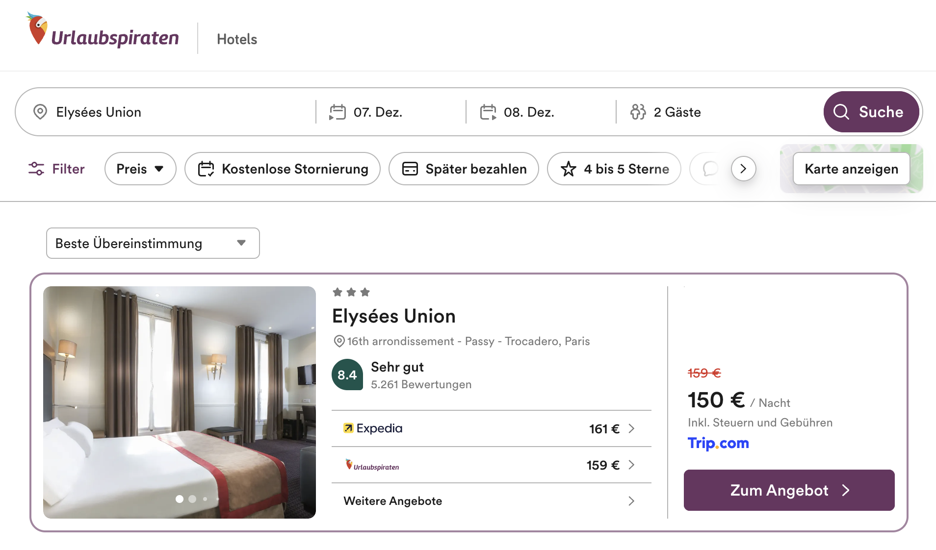 Trivago ist eine Preissuchmaschine und vergleicht alle Preise auf dem Markt, daher kann es sein, dass euch ein anderer Preis bzw. auch ein anderer Veranstalter angezeigt wird, nachdem ihr euch weiterleiten lassen habt. Denn überlegt mal, wie viele Zimmer ein Hotel zum günstigsten Preis hat und wie viel tausend User durch uns innerhalb von kurzer Zeit darauf zugreifen können bzw. buchen. Daher heißt der beste Tipp schnell sein, gerade wenn es sich um kleinere Hotels oder gar Ferienwohnungen handelt, die Ruck Zuck ausgebucht sind.