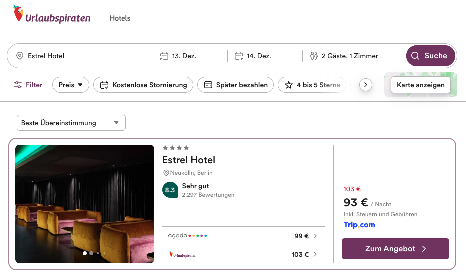 8,4 von 10 Punkten bei Booking