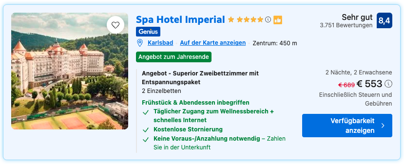 Woanders kostet der Beispieltermin 06. - 08.01.2026. schon mal 553€ gesamt, bei Secret Escapes hingegen nur 398€. Not bad!