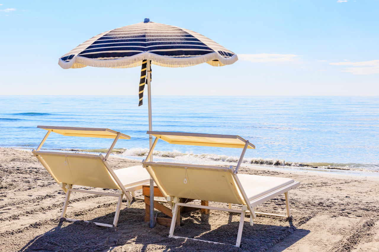 Strandservice: 1 Sonnenschirm und 2 Liegen ab der 4. Reihe