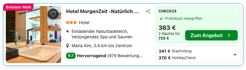 Woanders kostet der Beispieltermin 25. - 27. Januar gleich mal mindestens 341€ pro Person, während ihr bei uns nur 219€ pro Person bezahlt und dann noch Extras wie zum Beispiel das Abendessen bekommt. Das ergibt weit mehr als 36% Ersparnis!