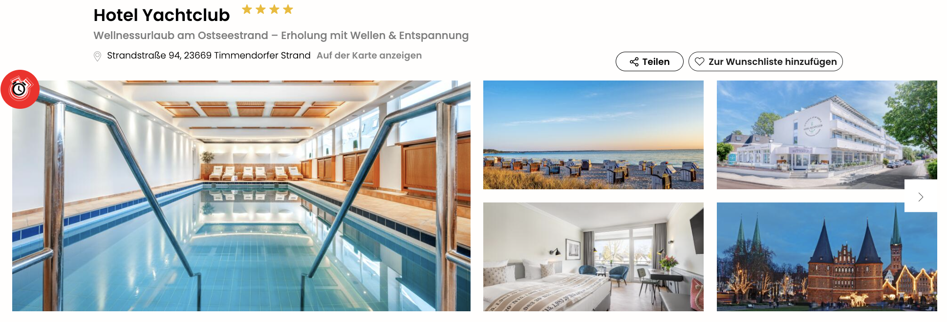 Ab NUR 75€ geht's hier an die Ostsee: Ihr bekommt zwei Nächte im 4* Hotel Yachtclub in Timmendorfer Strand inklusive Frühstück 🥞 sowie Zugang zum Wellnessbereich. 😍 Zusätzlich könnt ihr euch über das ein oder andere Extra freuen, beispielsweise eine Massage auf der HydroCoast Liege (19,00 € p.P.) oder ein garantiertes Zimmerupgrade ins Doppelzimmer Premium. ✨