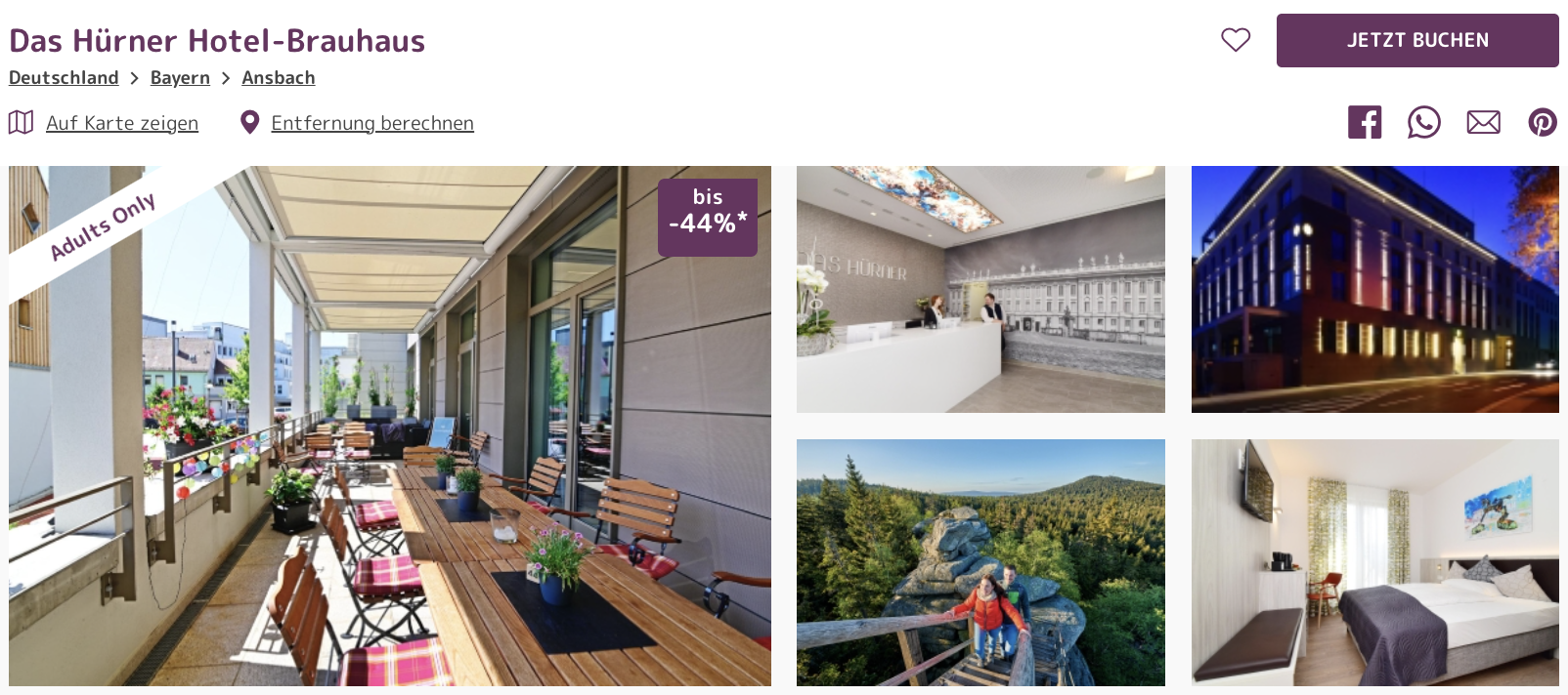 Das Adults Only-Hotel Hürner in Ansbach in Franken verfügt über ein eigenes Brauhaus, in dem das gleichnamige Hürner-Bier gebraut wird. Außerdem erwarten euch tägliches Frühstück und ein typisch fränkisches Tellergericht inklusvie einem Hürner-Bier pro Person. Entspannen könnt ihr im Wellnessbereich mit Sauna, Infrarotkabine und Fitnessraum. Zwei Nächte gibt's bereits ab 99 € pro Person.