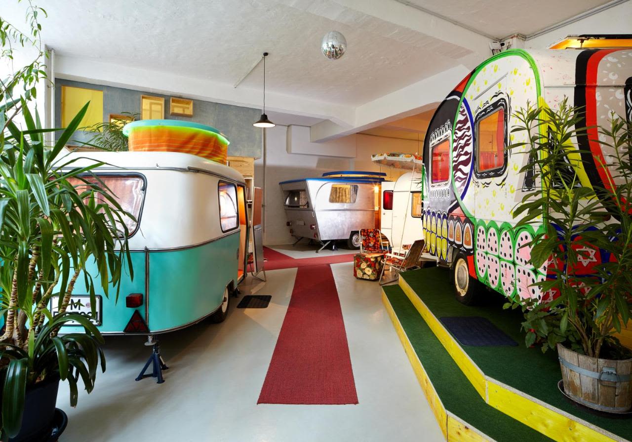 Das und noch mehr ist im Hüttenpalast in Berlin möglich. Von außen relativ unscheinbar versteckt sich das Hotel in Kreuzkölln in einer ehemaligen Hinterhoffabrik. In einer Halle befinden sich die bereits erwähnten Wohnwagen, die mit viel Liebe zum Detail restauriert wurden. Neben weiteren Wohnwagen gibt es in der zweiten Halle zudem noch ein paar Hütten im Retro-Stil. In den Hallen könnt ihr ein Gemeinschaftsbad nutzen. Campingfeeling mitten in der Großstadt und mit Schönwettergarantie!