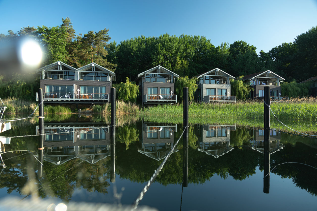 Die luxuriösen Ferienhäuser sind ideal für kleinere Gruppen oder Familien, denn auf insgesamt 110qm bieten sie ordentlich Platz. Sie haben zwei Schlafzimmer, die jeweils über ein eigenes bad verfügen sowie ein Wohnzimmer. Die Ruhe am Wasser genießen könnt ihr auf dem großzügigen Balkon. Im Obergeschoss gibt es eine zweite Terrasse, die überdacht und mit Lounge-Möbeln ausgestattet ist.