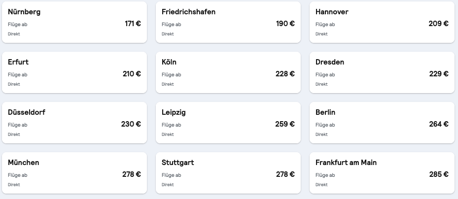 Wir verlinken euch zusätzlich Flüge, da es sich bei diesem Deal um ein reines Angebot für das Hotel handelt. Flüge bekommt ihr aber im Oktober zum Beispiel bereits ab 237€ p.P.