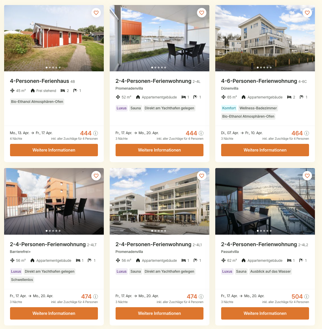 4 Nächte im Ferienhaus bekommt ihr Anfang April schon ab 111€ p.P., wenn ihr zu viert anreist (444€ Gesamtpreis). Nach der Weiterleitung könnt ihr einfach die Personenzahl und das Datum anpassen und die perfekte Unterkunft für euch finden.