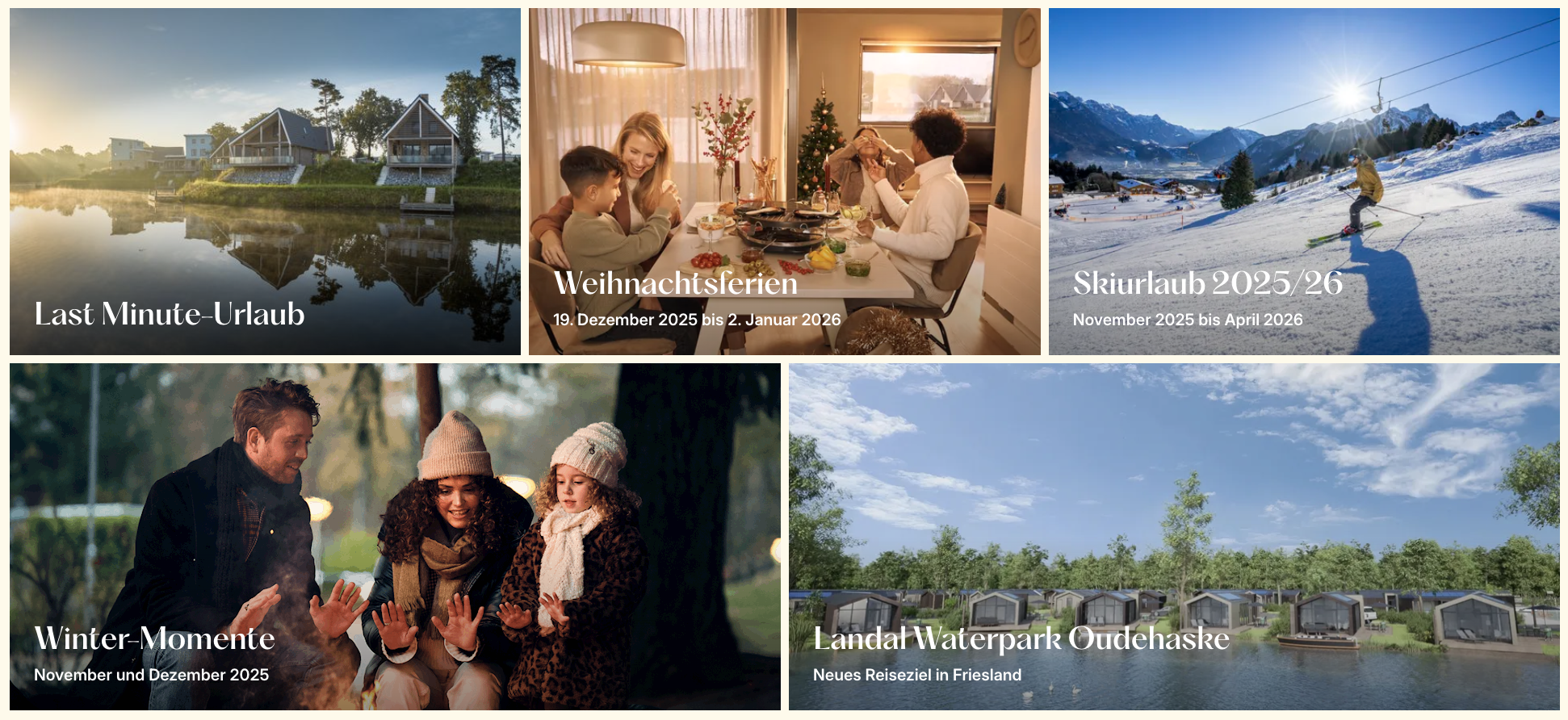 Landal hat Ferienparks in Deutschland, Österreich, Dänemark, Tschechien, Belgien, der Schweiz, den Niederlanden und Großbritannien. Nach der Weiterleitung wählt ihr einfach das Land, Datum und die Personenzahl aus oder ihr lasst euch einfach inspirieren und sortiert z.B. nach den günstigsten Angeboten und wählt nur Ferienparks am Wasser aus.