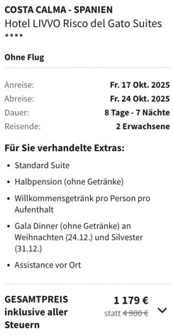 Nur beeilen solltet ihr euch, denn dieser Deal ist nur wenige Tage buchbar.