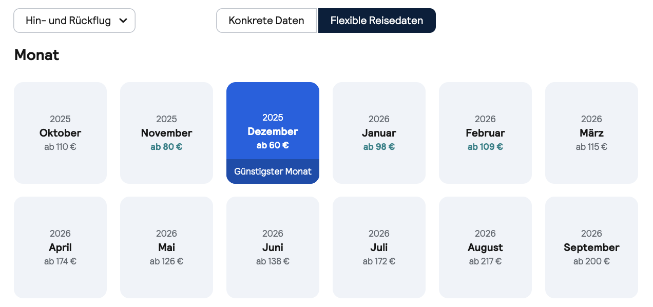 Die günstigen Flüge bekommt ihr deutschlandweit bereits ab 60€ hin und zurück im Dezember.