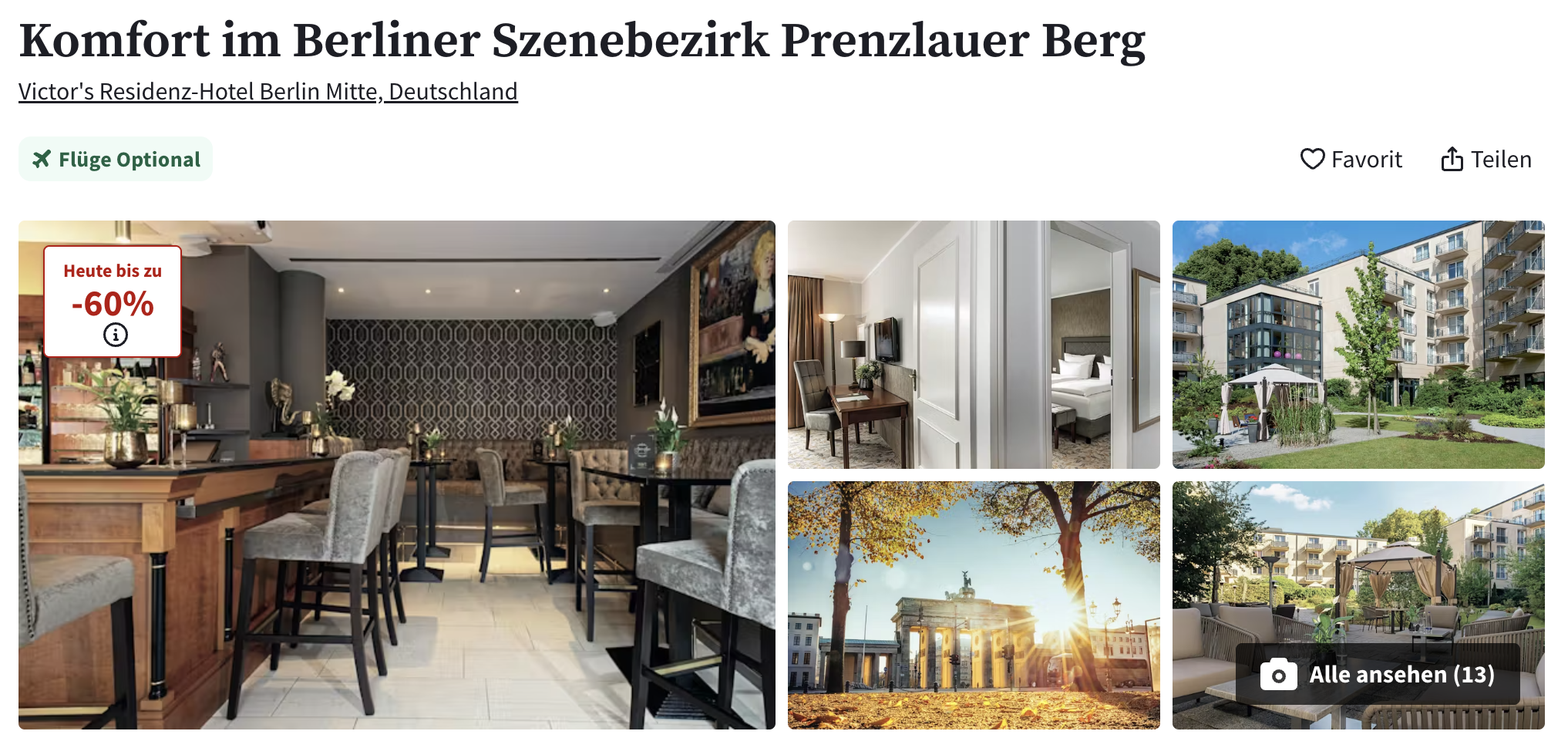 Einen Hoteltipp haben wir auch für euch: Das 4* Victor's Residenz-Hotel Berlin befindet sich direkt am Volkspark Friedrichshain und weniger als eine halbe Stunde zu Fuß vom Lucia Weihnachtsmarkt entfernt. Eine Übernachtung in der Deluxe-Junior-Suite inklusive Frühstück und Late Check-out bekommt ihr momentan ab 54€ pro Person.