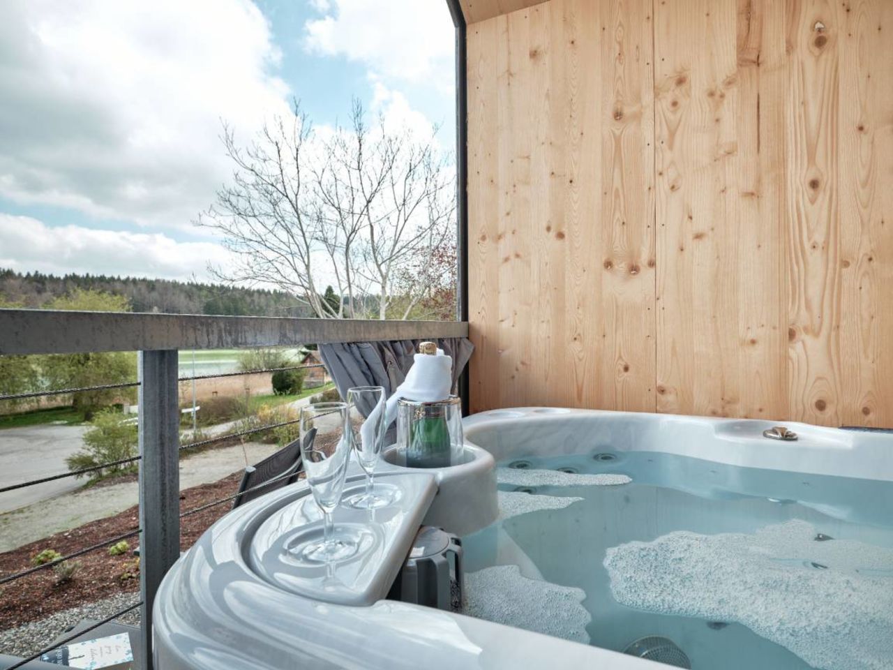 Zur Entspannung gibt es zusätzlich eine Indoor-Infrarotkabine und einen privaten Outdoor-Whirlpool auf der überdachten Terrasse.