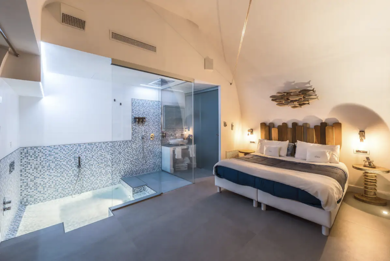 Das Studio bietet Platz für 2 Personen und ist - nicht zuletzt wegen der großzügigen, in den Boden eingelassenen Whirlwanne - perfekt für einen Romantikurlaub. Zudem ist das Airbnb mit Doppelbett, kleiner Küchenecke und Terrasse mit Meerblick perfekt ausgestattet. Bis ins Stadtzentrum sind es etwa 10 Minuten zu Fuß.