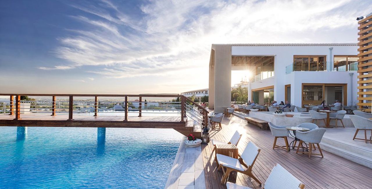 Das Mitsis Blue Domes Resort & Spa verfügt über luxuriös und geschmackvoll eingerichtete Zimmer, die schlichte Eleganz und einen herrlichen Ausblick bieten. Das Resort liegt direkt am Strand und bietet zusätzlich eine 650 Meter lange Pool-Anlage mit 8 großen Pools und 6 gemeinschaftlichen Pools, insgesamt 10 Restaurants und 6 Bars.