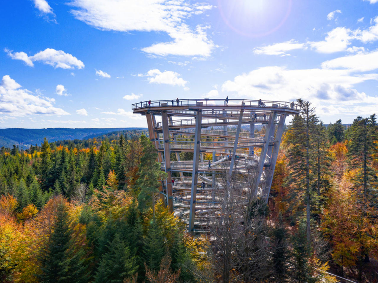 Die Lage ist ideal, um vor Ort aktiv zu werden, egal, ob mit dem Rad oder zu Fuß bei einer Wanderung. Bis zum Baumwipfelpfad Schwarzwald sind es etwa 26 km. Mit einer Gesamtlänge von 1.250 Meter und einer Höhe bis zu 20 Meter über dem Waldboden schlängelt sich der Pfad durch Buchen, Tannen und Fichten vorbei an zahlreichen Lern- und Erlebnisstationen mit Wissenswertem zur heimischen Natur- und Tierwelt. Hoch hinaus geht's auf dem Aussichtsturm - dort könnt ihr den Blick aus 40 Metern Höhe schweifen lassen.