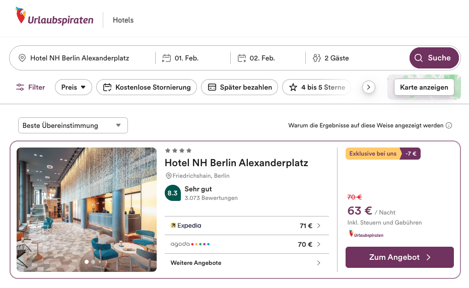 Es geht ins super zentrale 4* Hotel NH Berlin Alexanderplatz, wo ihr für eine Übernachtung zu zweit ab nur 31,50€ pro Person bezahlt. Gegen Aufpreis gibt es auch das Frühstück am Morgen dazu.