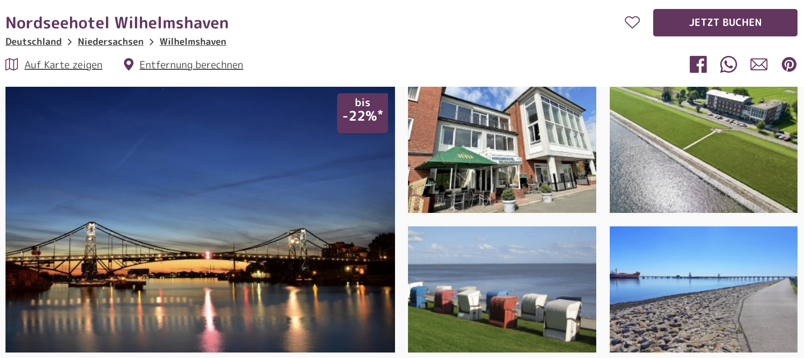 Euer Hotel ist dabei das Nordseehotel Wilhelmshaven, welches direkt am Deich liegt und in dessen Wellnessbereich mit Sauna ihr euch nach ausgedehnten Spaziergängen aufwärmen und die Akkus aufladen könnt. Termine findet ihr durchgehend zum Bestpreis im November und Dezember.