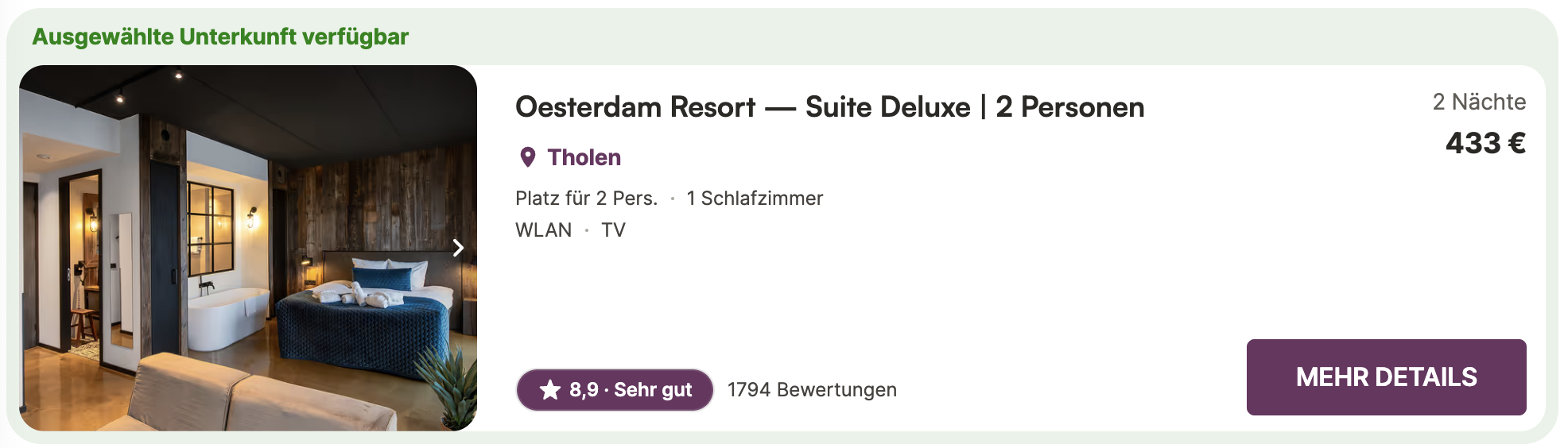 Der hier genannte Reisepreis ist mit der Veröffentlichung des Deals verfügbar und buchbar, jedoch haben wir keinen Einfluss darauf, wann und wie stark sich ein Reisepreis verändern kann. Wenn die Nachfrage besonders hoch ist, kann das Beispieldatum ausgebucht sein, sodass euch ein anderes Datum & Preis angezeigt wird.