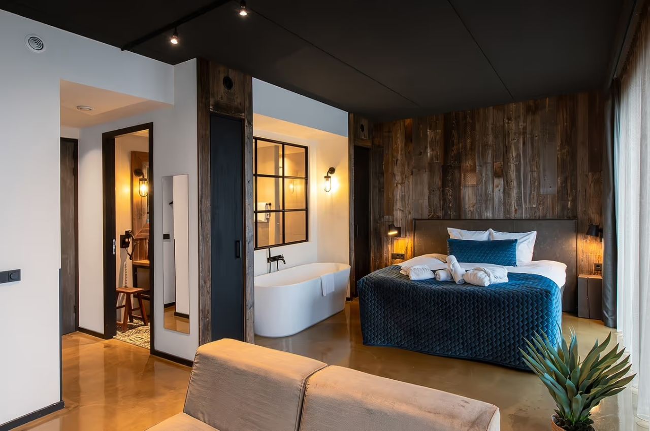 Deluxe Suite mit freistehender Badewanne im niederländischen Resort mit Pool & Wellness