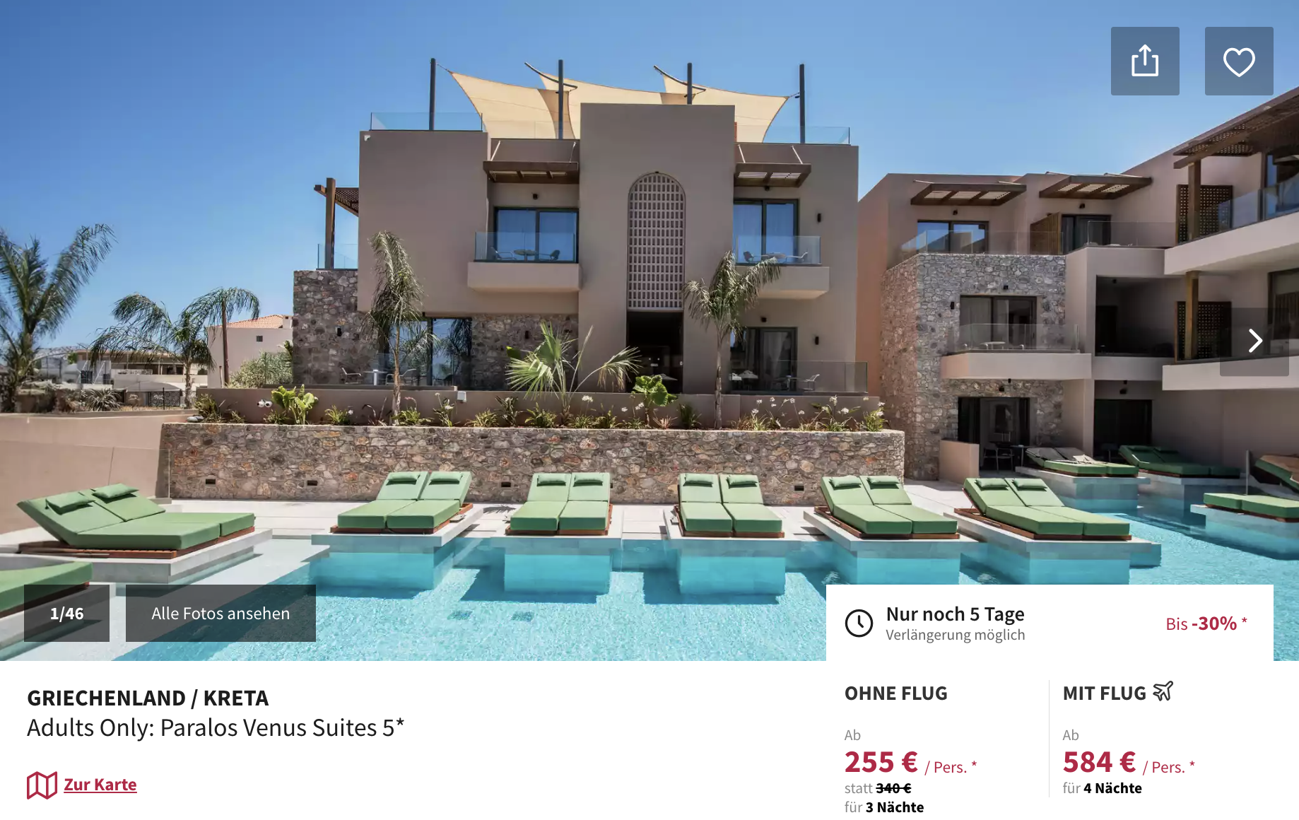 Uns ist gerade das 5* Erwachsenen-Hotel Paralos Venus Suites bei Voyage Privé über den Weg gelaufen. Die Bewertungen sind bisher echt überragend! So gab es bereits den Travellers' Choice Award 2024 und jetzt auch 2025!