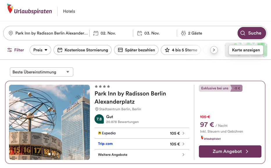 ihr wollt bei eurem nächsten Citytrip in die Hauptstadt hoch hinaus? Dann kommt dieser Deal nämlich wie gerufen. Das 4* Park Inn by Radisson Berlin Alexanderplatz gilt nämlich aktuell noch als höchstes Hotel der Hauptstadt (bis zur Fertigstellung des rund 25 Meter höheren Estrel Towers ca. Ende 2026).