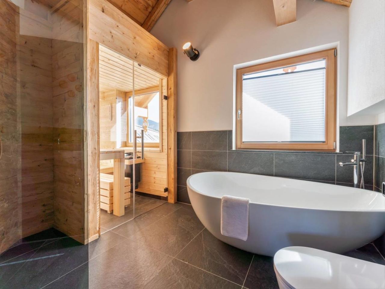 Das Penthouse ist mit zwei Schlaf-, sowie zwei Badezimmern, einem Wohnzimmer mit Kamin und einer offenen, modernen Küche mit allen Geräten ausgestattet. Zum Entspannen ist für euch auch ein eigener Sauna-/Wellnessraum vorhanden - hier steht auch eine große, freistehende Badewanne.