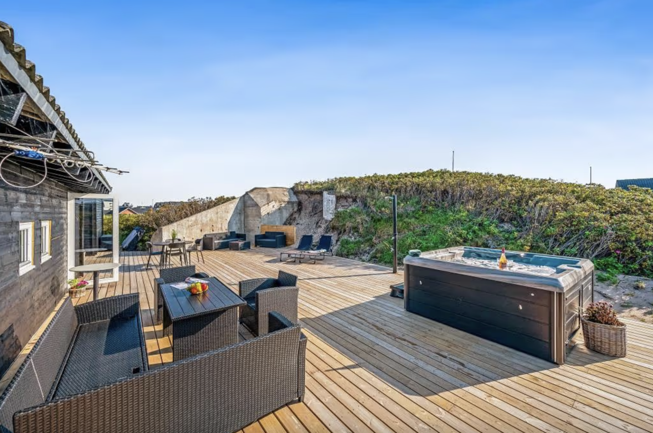 Highlight ist der Außenbereich, der nicht nur Sitz- und Liegemöglichkeiten bietet, sondern auch einen Whirlpool. 💦 Und dann wäre da noch die Nähe zum Strand: Nach nur etwa 200 Metern Fußweg spürt ihr den Sand unter euren Füßen.