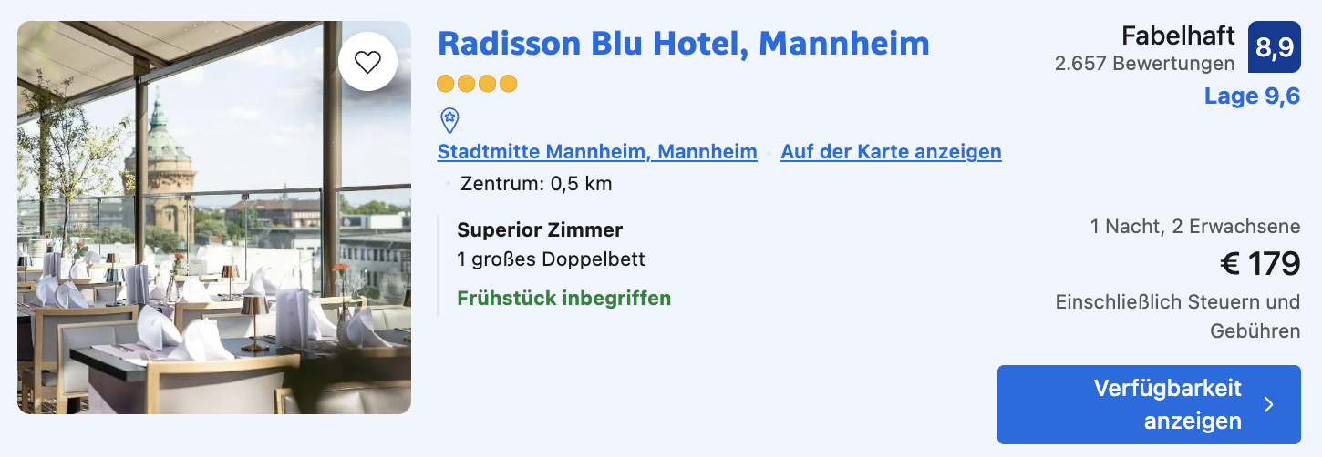 Bietet das Hotel Radisson Blu Mannheim Parkplätze für Gäste an?