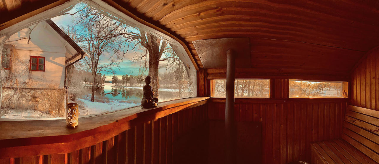 Doch unser erster Gang führte erstmal geradewegs ins Saunahäuschen. Die Sauna dürfen wir ganz urtümlich selbst mit Holz beheizen und anschließend wärmen wir uns darin ordentlich auf - mit Panorama-Blick auf den gefrorenen See. Idylle pur! In der Sauna stehen euch außerdem verschiedene ätherische Öle zur Verfügung, um die Sauna-Erfahrung zu vervollständigen.