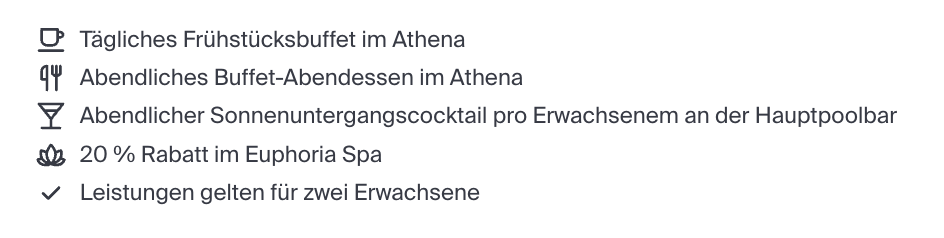 💥 5 Nächte (beispielsweise im Mai 2026) gibt es bei dem Reiseveranstalter LuxuryEscapes aktuell inklusive Zimmer mit Meerblick, Frühstück & Abendessen, abendlichen Cocktail und 20% Rabatt im Euphoria Spa 🤩.