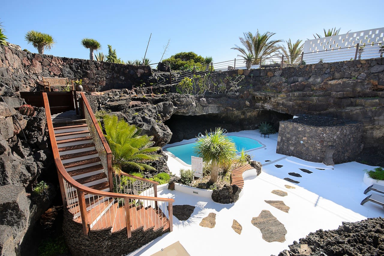Die Finca Isabel in Mozaga ist eine rustikale Unterkunft mit vulkanischen Felswänden. Das Highlight ist aber auf jeden Fall die Poolanlage inmitten einer natürlichen Vulkanlandschaft mit Fels- und Lavawänden. Der Pool verfügt über einen Springbrunnen und Massagedüsen. In den Hängematten und im Schatten der Höhle könnt ihr relaxen.