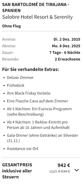 Nur beeilen solltet ihr euch mit der Buchung, da der Deal nicht mehr lange buchbar ist!