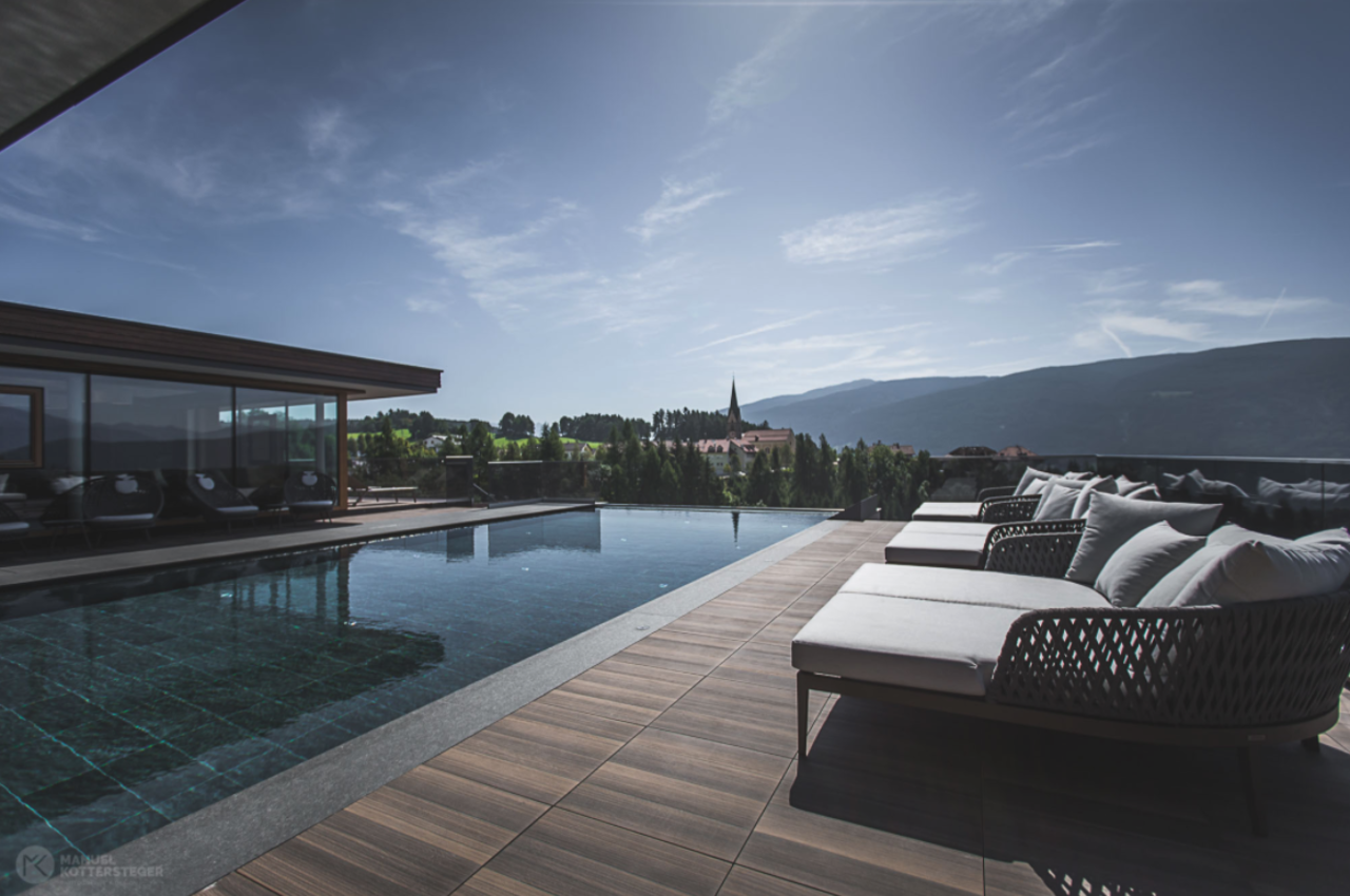 Genießt die Sonne in der Natur oder dem Sky-Pool des Hotels! Denn nirgends scheint mehr die Sonne als in Terenten - 2.285 Sonnenstunden sind es durchschnittlich im Jahr!
