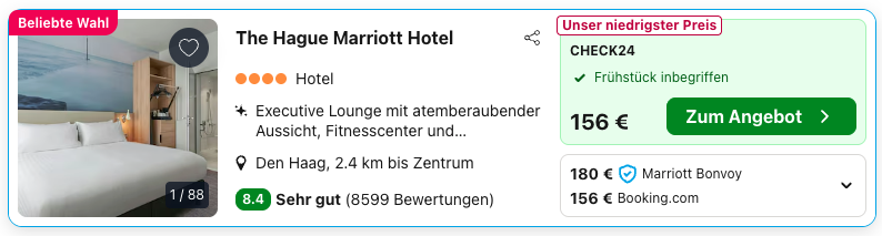 Vom 3. - 4. Dezember zahlt ihr bei anderen Anbietern schon 156€ für die Nacht inkl. Frühstück. Bei Travelcircus sind es nur 110€ bzw. 55€ pro Person. Ersparnis: knapp 30%!
