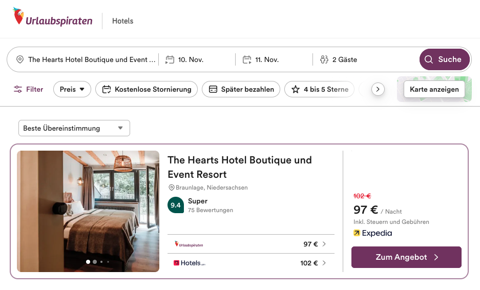 Denn das geniale 4* The Hearts Hotel in Braunlage ist vielleicht DAS stylischste Hotel des Harzes. Die Inneneinrichtung ist schick und modern, zudem kommt es mit allerhand Extras um die Ecke. Neben Restaurant und Sonnenterrasse gibt es zum Beispiel auch einen Fitness- und Wellnessbereich, zu dem ihr Zugang habt.