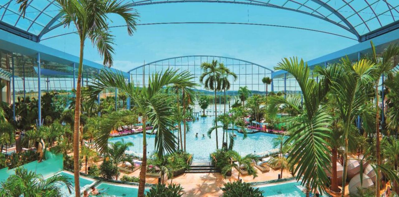 Euch erwarten eine große Lagune mit 34° C warmen Wasser und eine angenehme Lufttemperatur von 32° Celsius. Entspannen könnt ihr im Whirlpool oder einem der Mineralbecken. Im Außenbereich erwartet euch außerdem der ca. 2.000 qm große Sandstrand "Paradise Beach" und ein Natursee, auf dem man sogar Tretboot fahren kann. Im Saunabreich warten 13 Saunen auf euch.