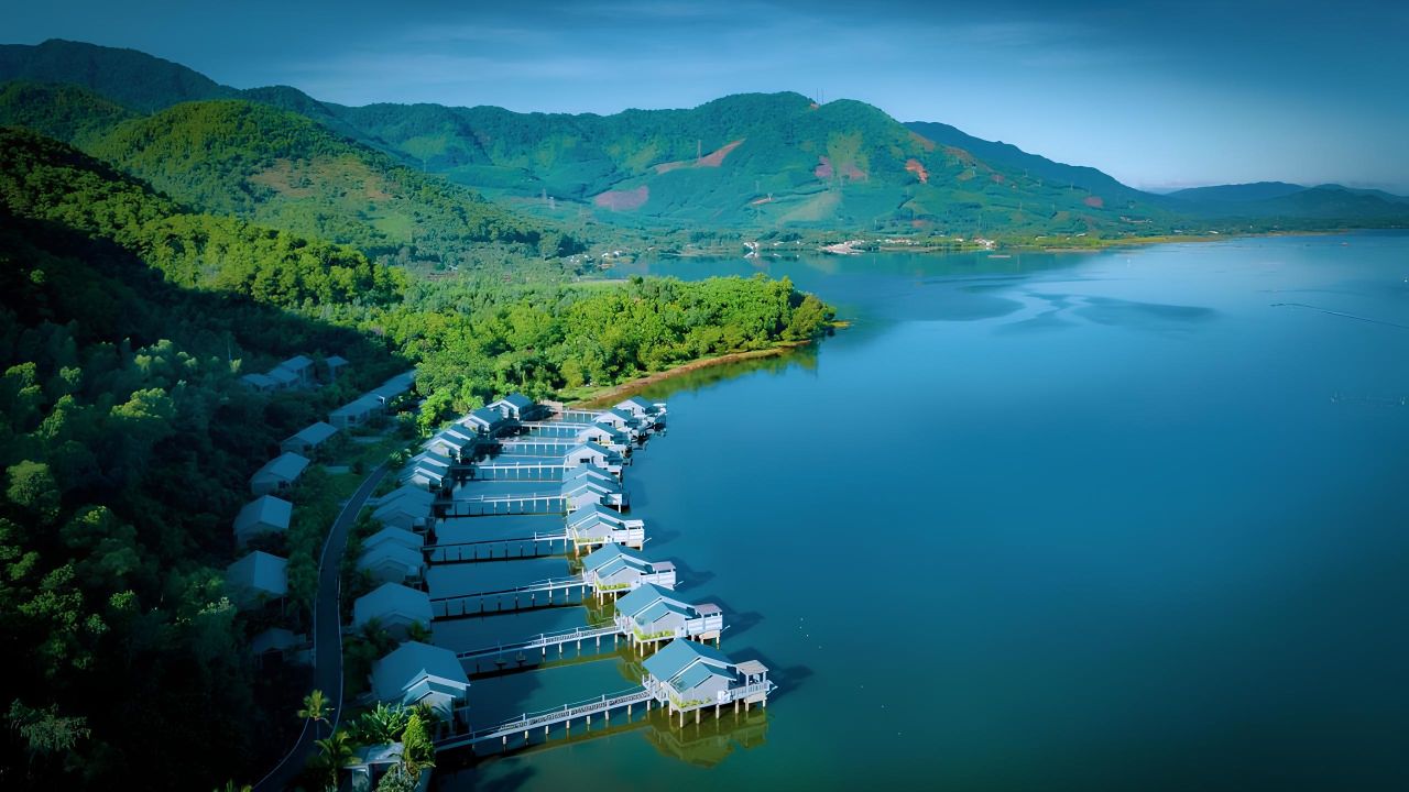 Es bietet luxuriöse Villen und Bungalows, darunter auch einige über dem Wasser, die modern und stilvoll gestaltet sind und traditionelle vietnamesische Akzente aufweisen.