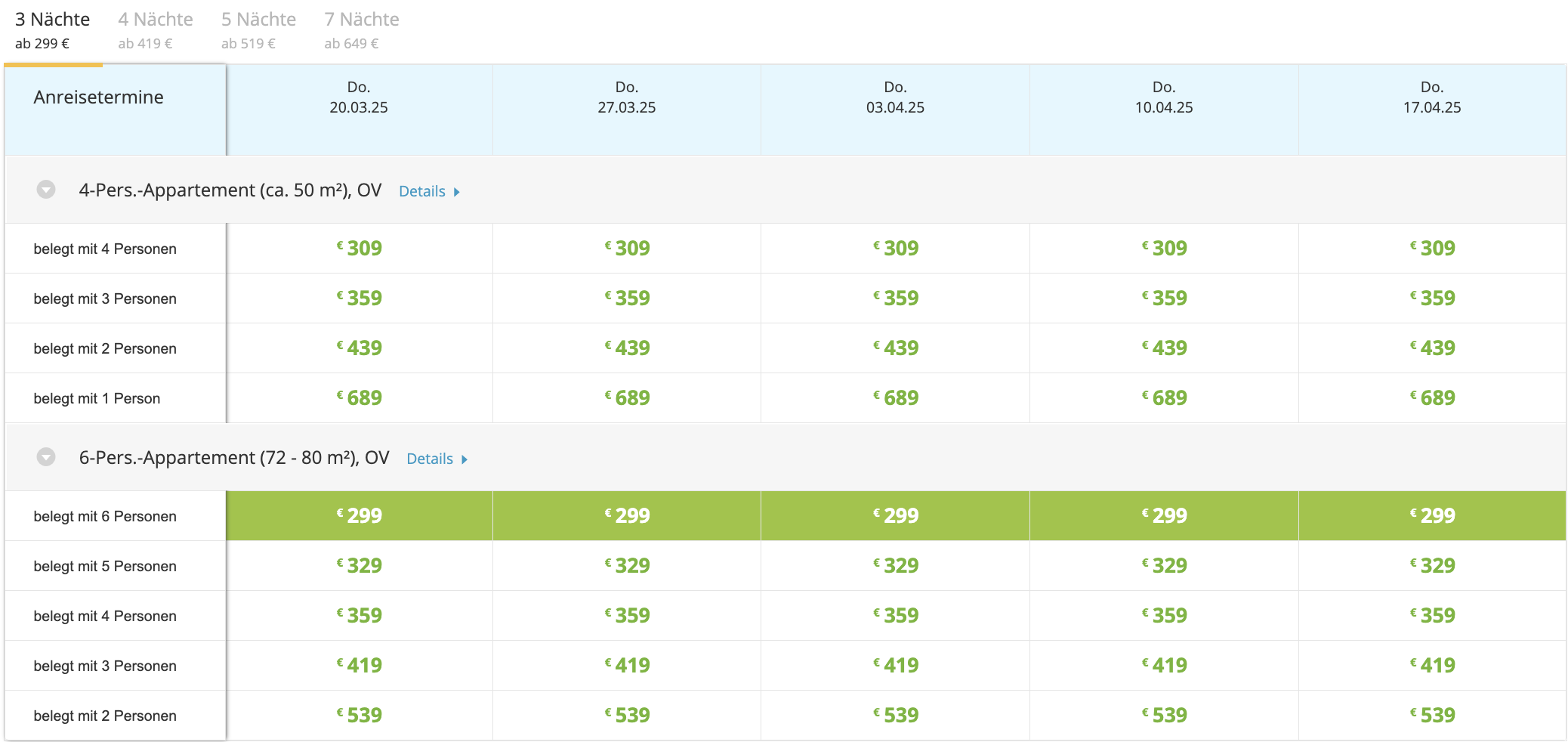 3 Nächte inkl. Skipass kosten euch ab 279 € pro Person im 6-Personen-Apartment. Macht eine Ersparnis von 199 € pro Person im Vergleich zur Einzelbuchung!