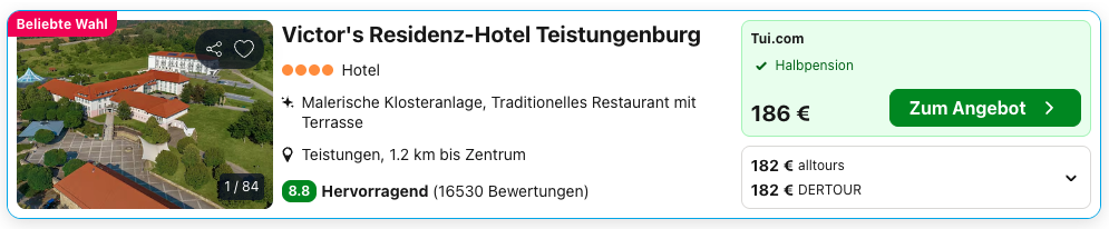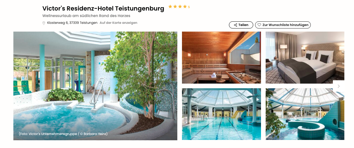 Das 4* Victor's Residenz-Hotel liegt am südlichen Rand des Harzes, zwischen Duderstadt und Teistungen. Vom Hotel aus könnt ihr auf Wanderwegen durch das Mittelgebirge spazieren oder romantische Orte entdecken und dabei durch kleine Gassen und vorbei an Fachwerkhäusern unterwegs sein.