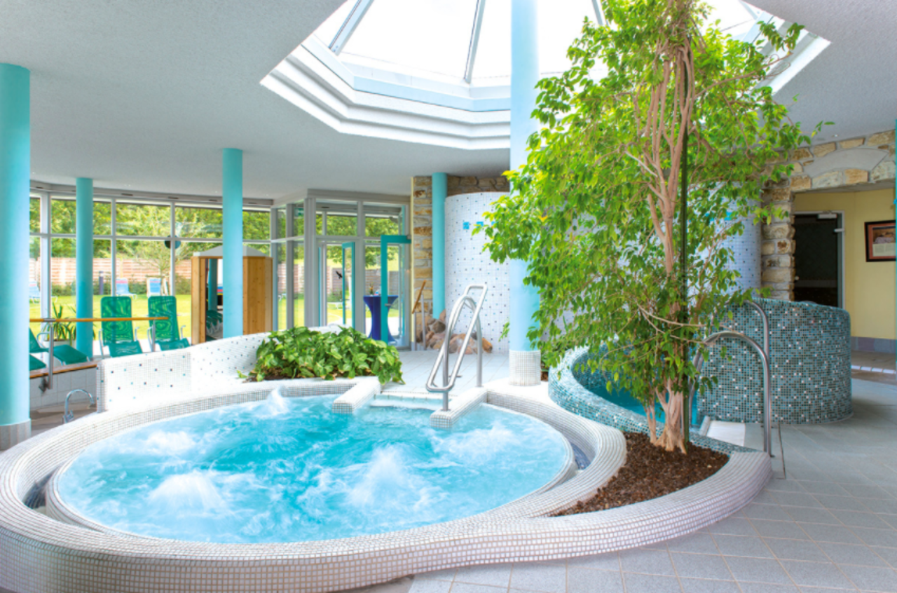 Das Hotel befindet sich auf dem Gelände eines ehemaligen Zisterzienserinnenklosters. Herzstück ist der 3.000 qm große Wellnessbereich in der renovierten "VILLA ACTIVA". Dort warten ein Innen- und Außenbecken mit 62 Meter langer Rutsche, ein Whirlpool und ein Strömungsbecken sowie eine umfassende Saunalandschaft mit Eukalyptussauna, Trockensauna und Infrarotkabine auf euch.