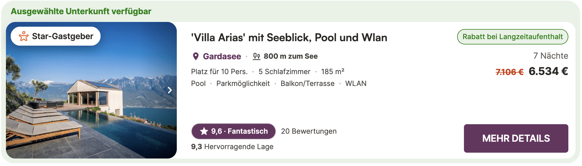Gesamtpreis 6.534 € = 653 € pro Person (10 Personen)