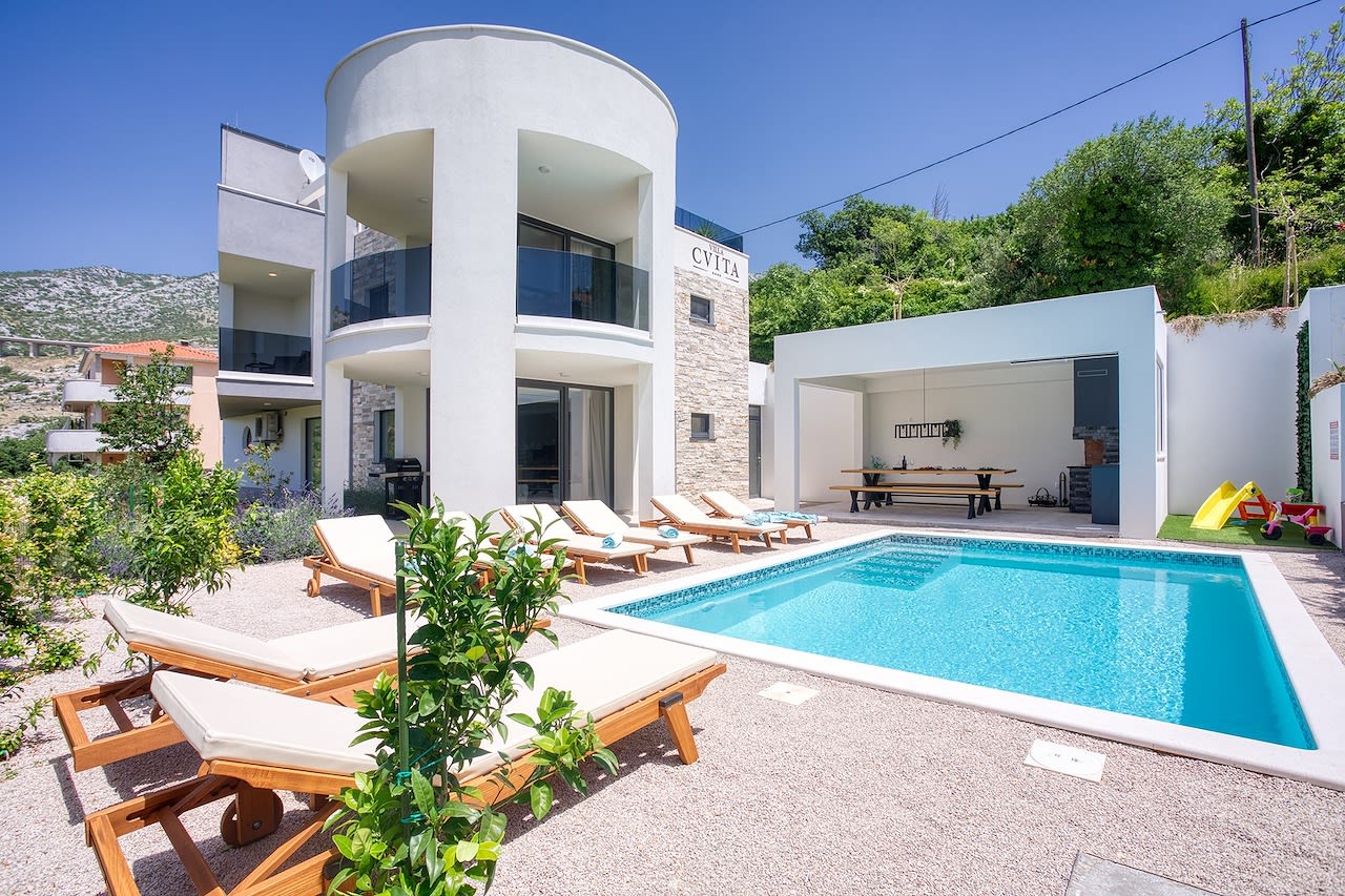 Die dreistöckige Villa Cvita in Klis in Kroatien bietet euch einen tollen Panorama-Ausblick über die umgebende Landschaft und obendrauf alle möglichen coolen Features, wie z.B.:
