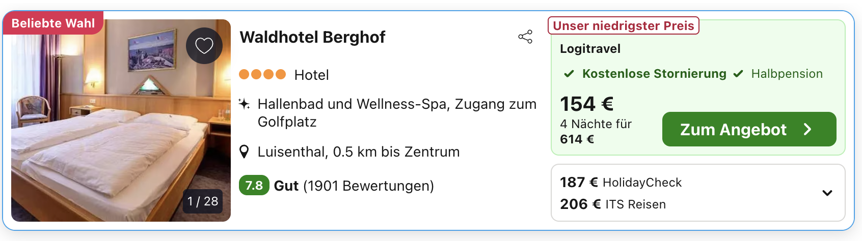 Ein passendes Hotelangebot gibt's aktuell bei Travelpartner, wo ihr vier Nächte mit Halbpension ab nur 179 € pro Person buchen könnt. Zusätzlich gibt es eine Hydrojet-Massage und ein Begrüßungsgetränk.