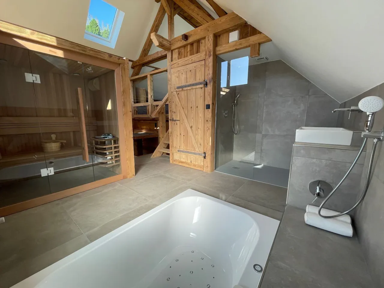 Das bekommt ihr in dieser umgebauten Scheune in Frankreich! Hier könnt ihr in eurer privaten Sauna und eurem privaten Whirlpool relaxen und euch danach in das riesige 200x200 Bett fallen lassen.